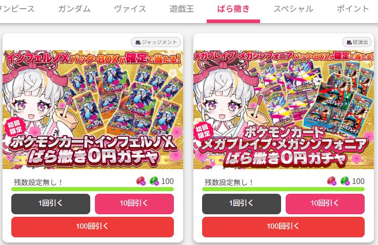 ばら撒き専用コインばら撒き限定コインを使うと、【パックかBOXが確定でもらえる】ばら撒き0円ガチャを引くことができます!