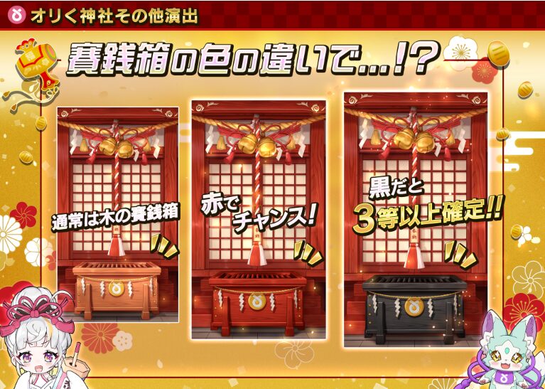 • オリくじの演出は「オリく神社演出」「ステップアップ演出」が公式で代表的